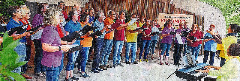Die Mitglieder der Chorgemeinschaft Frohsinn erfreuen am Sonntagvormittag die Zuhörer im Park der Zeiten.