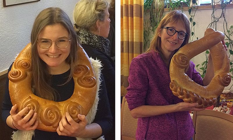 Dieses Jahr gab es sogar zwei große Kränze, gespendet von der Bäckerei Brantner und vom Verein. Zum Abschluß wurde unter allen Dagewesenen ausgewürfelt. Doris Möller und Annika Hettich hatten Würfelglück und wurden die neuen „Paschköniginnen“.