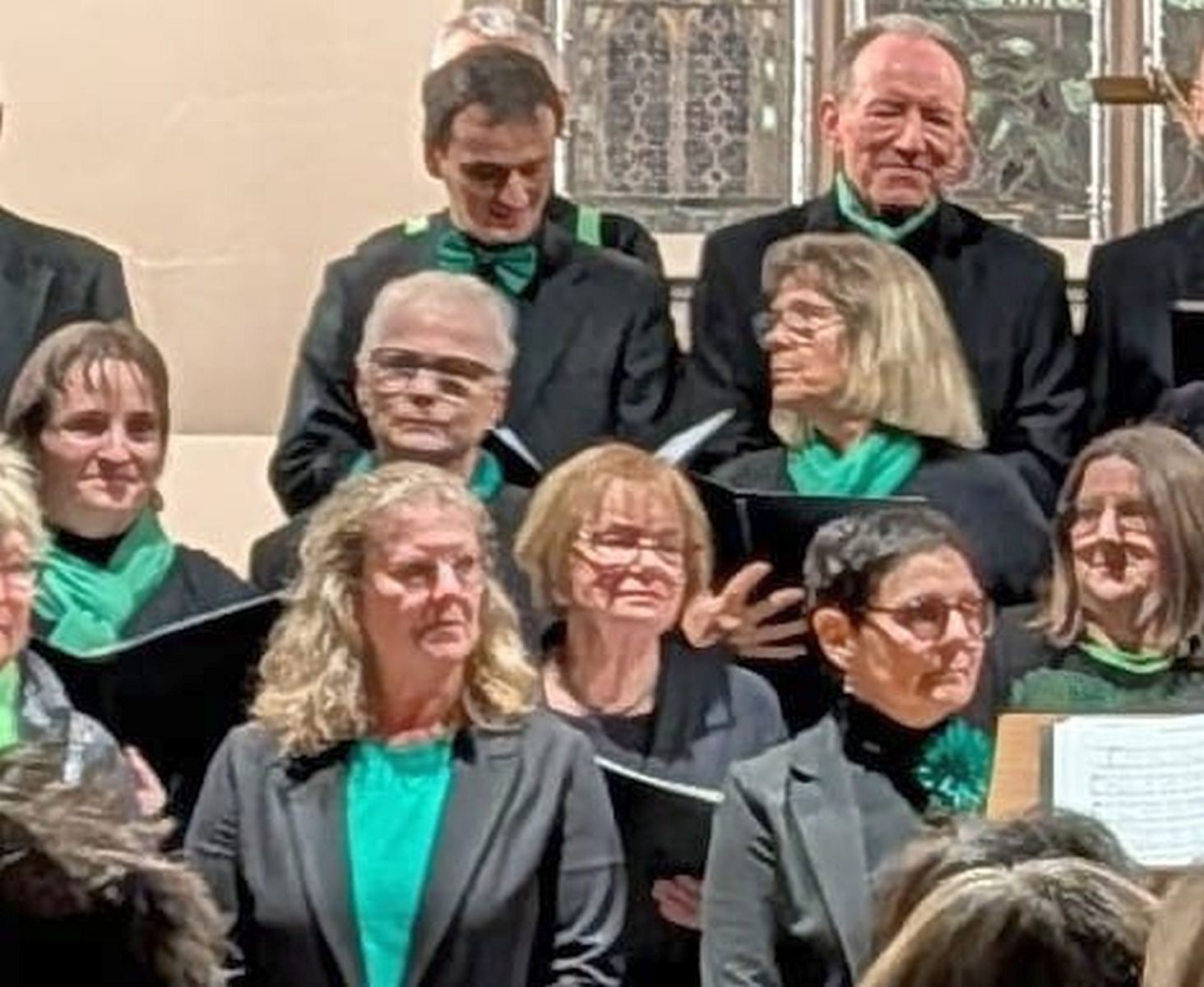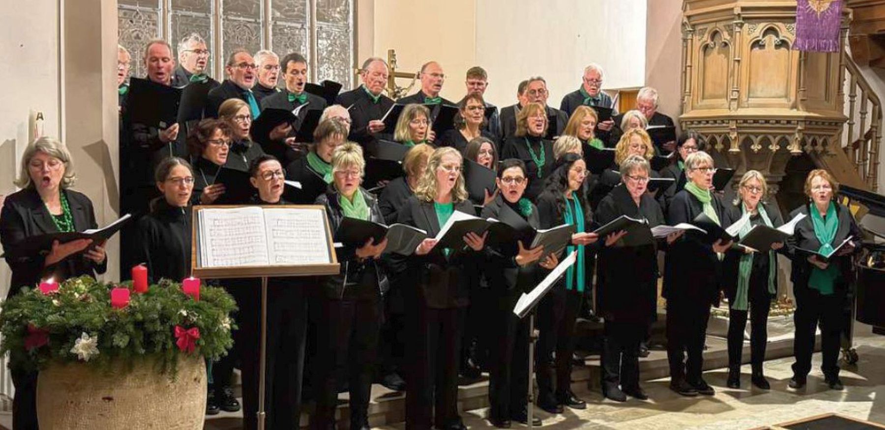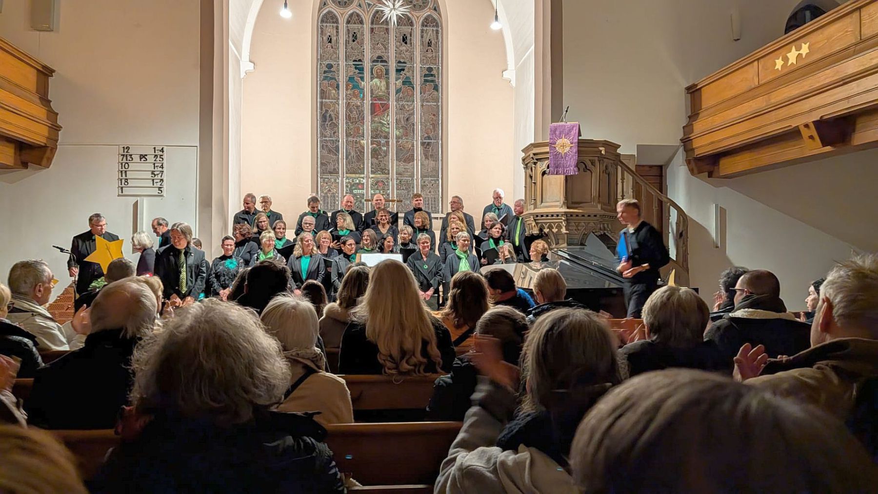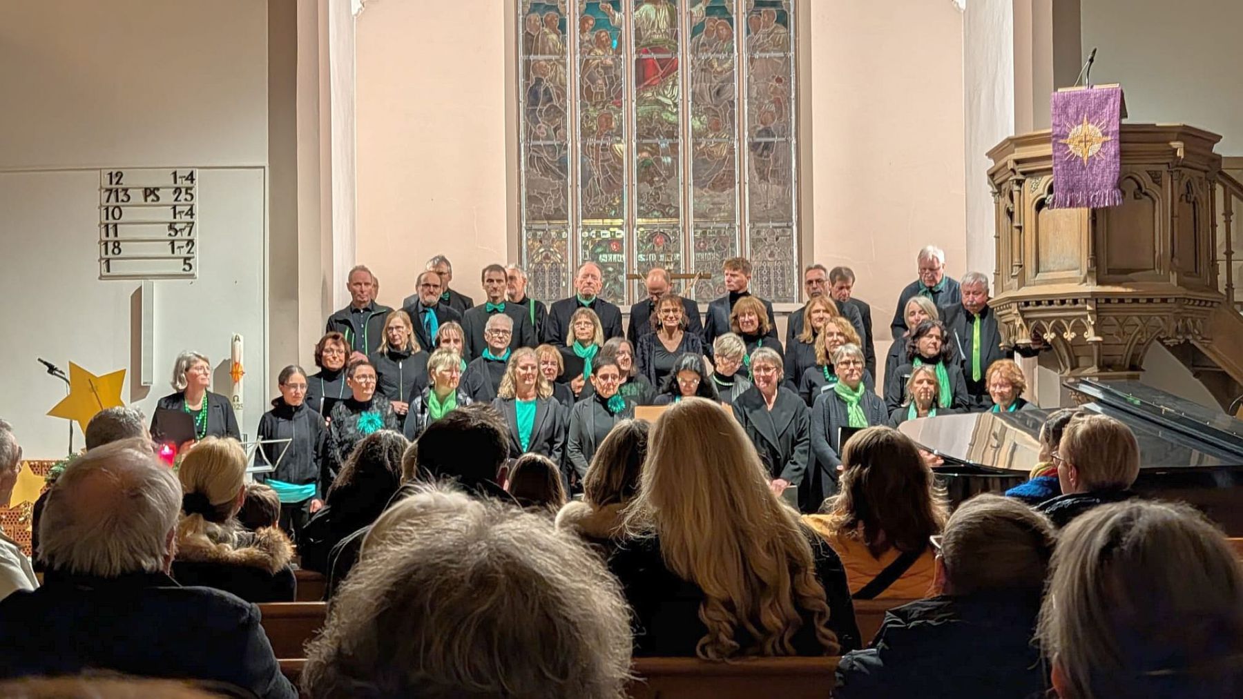 Zum Abschluss des Konzerts lud der Chor das Publikum zum Mitsingen ein. Während der Chor die erste Strophe anstimmte, konnten die Gäste in der zweiten Strophe klangvoll mit einsteigen.