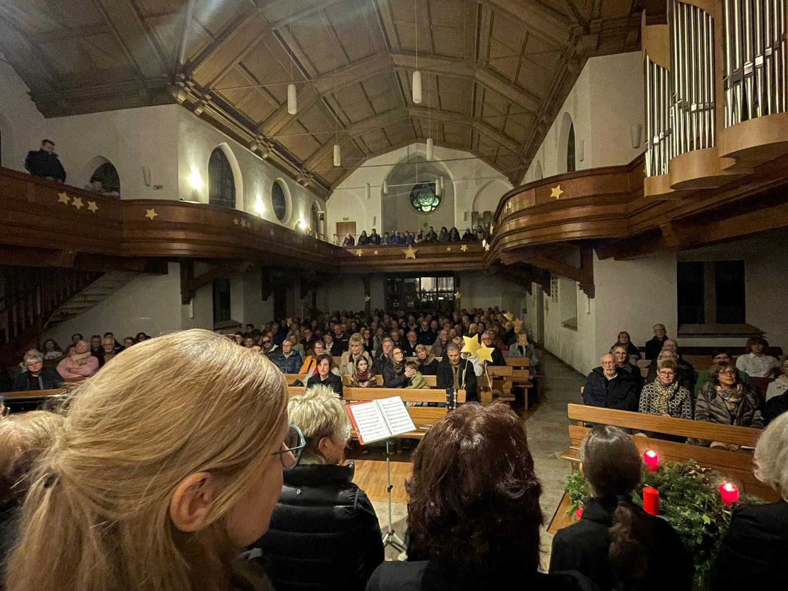 Mit hellen, klaren Stimmen – gleich Sternenlicht – eröffnete der Chor das Konzert mit dem Choral „Macht hoch die Tür“.