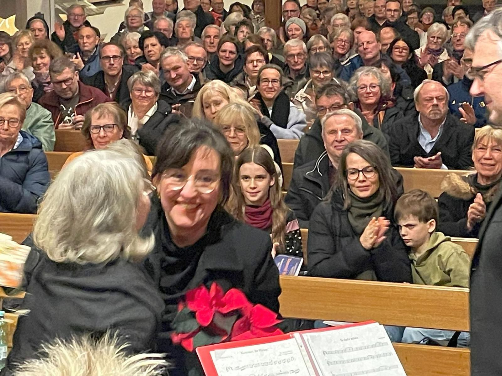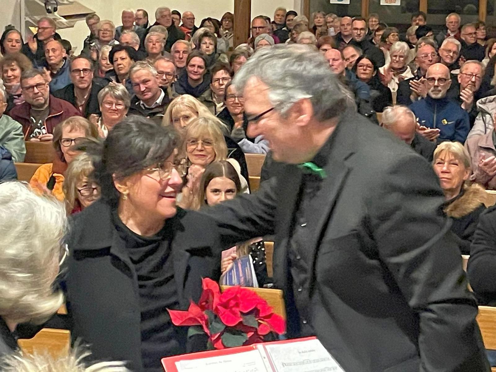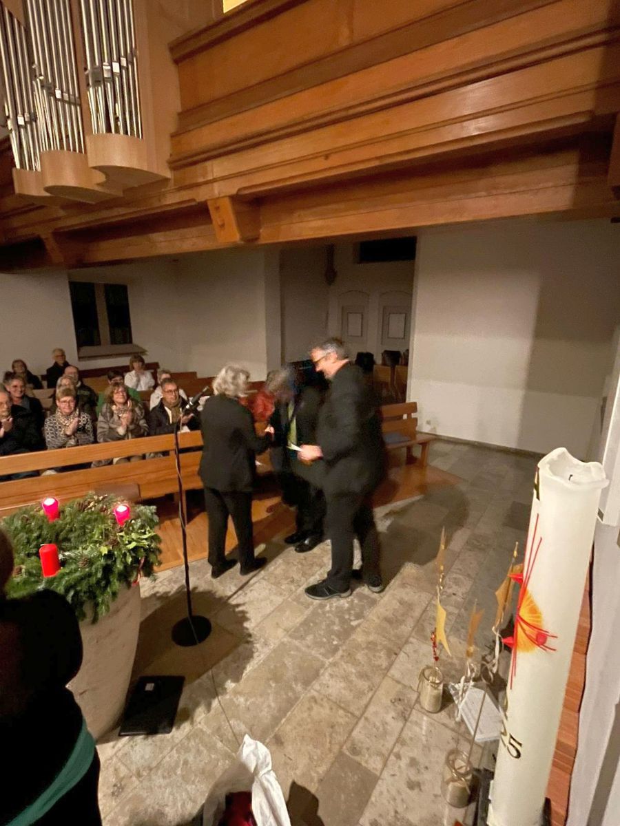 ebenso Johannes Romer für sein Spiel an Saxofon und Klarinette sowie Chorleiterin Claudia Habermann für ihre engagierte Leitung. Letztere erhielten als Zeichen der Anerkennung ein Präsent.