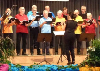 Bunt wurde es beim Auftritt von „Confetti Chor & more“: Erst romantisch mit dem Schlager „Das Beste“ von „Silbermond“. Billy Joels „For the longest time“ hatte Claudia Habermann eigens für den Chor arrangiert. Sie tanzte oft mehr als sie dirigierte und animierte so ihre Sängerinnen und Sänger aus sich heraus zu gehen. Auch den Oldie „My Girl“ hatte sie aufgefrischt, bevor Nena „Wunder geschehn“ ließ.
