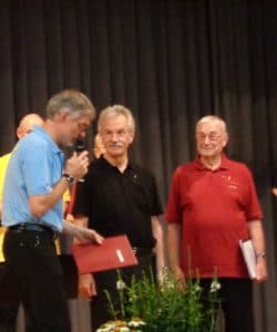 „100 Jahre Chorgesang“ ehrte Brugger anschließend. Für 60 Jahre im Frohsinn erhielt Harald Kiefer eine Urkunde und Ehrennadel des Bundesverbands. Konrad Maurer ehrte der schwäbische Sängerbund für 40 Jahre mit silberner Ehrennadel und Urkunde.