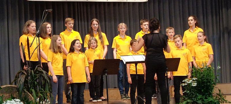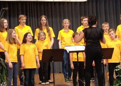 Seit Claudia Habermann auch an der Musikschule den Jugendchor leitet, kooperiere der Frohsinn auch verstärkt mit der Musikschule, so Brugger in der Ankündigung des Jugendchors der Musikschule. Dass den Kindern und Jugendlichen das Singen viel Spaß macht, zeigten sie in drei Liedern: “I have a dream“ von Abba, Eric Claptons Klassiker „Tears in heaven“ und schließlich aus Habermanns brasilianischer Heimat ein Sambalied.