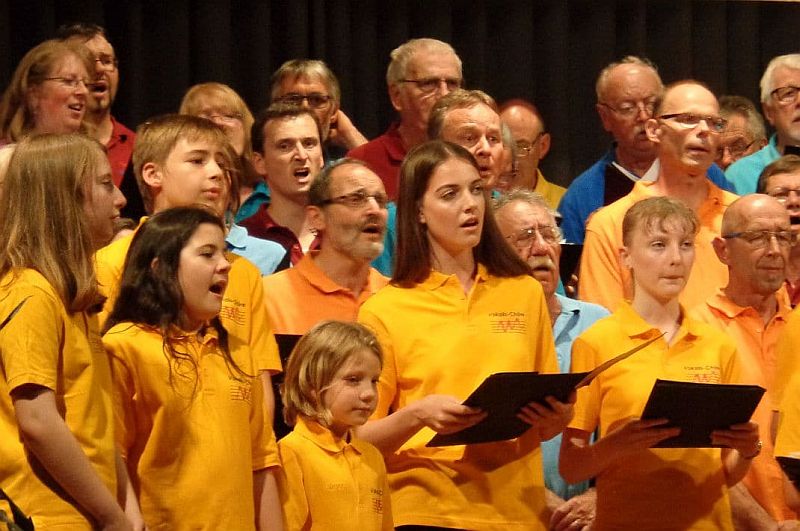 Beim „Gipfeltreffen der Töne“ waren anstatt Spitzenpolitikern wie Angela Merkel und Donald Trump motivierte Chöre vertreten, die die zahlreich erschienenen Gäste mit ansteckend fröhlichen Liedern unterhielten. Das Repertoire des gemischten Chors, des Frauenchors und des Männerchors reichte zu Beginn vom deutschen Volkslied „Erlaube mir, feins Mädchen“ über „Wochenend und Sonnenschein“ bis zu dem „Chianti-Lied“.