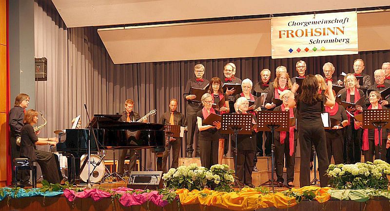 Zum zweiten Mal hatte die Chorgemeinschaft Frohsinn zu einem sommerlichen Konzert eingeladen. In der Aula des Gymnasiums boten die Sängerinnen und Sänger, verstärkt durch die Johannes-Romer-Band und die Sängerin Steffi Glunk und moderiert vom Frohsinnchef Thomas Brugger ein fröhlich-beschwingtes Programm.