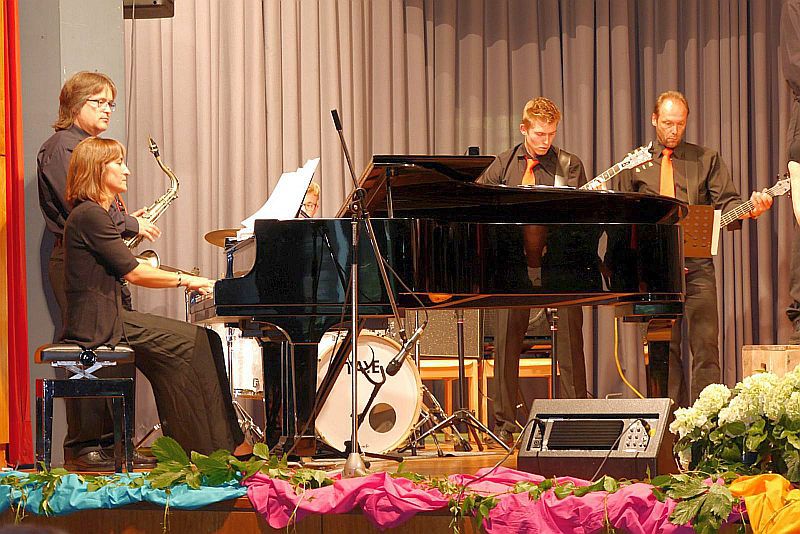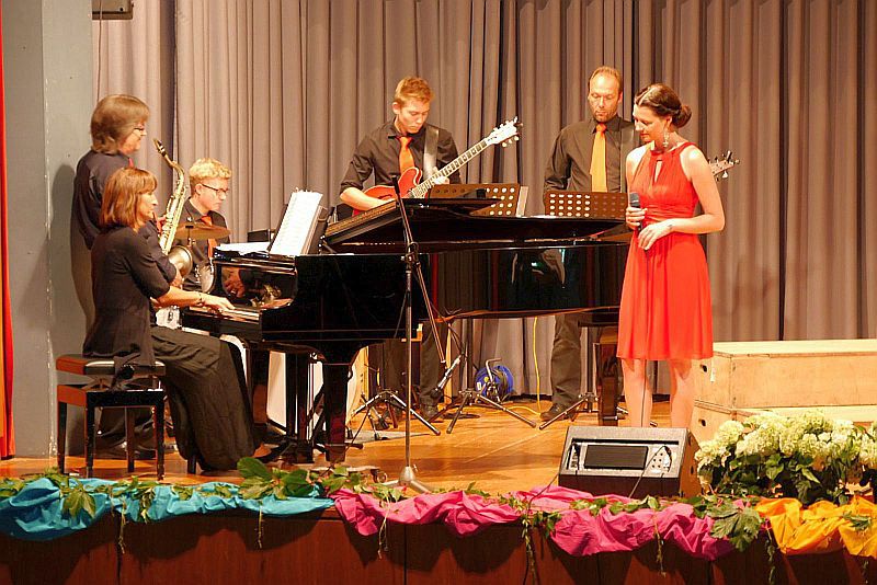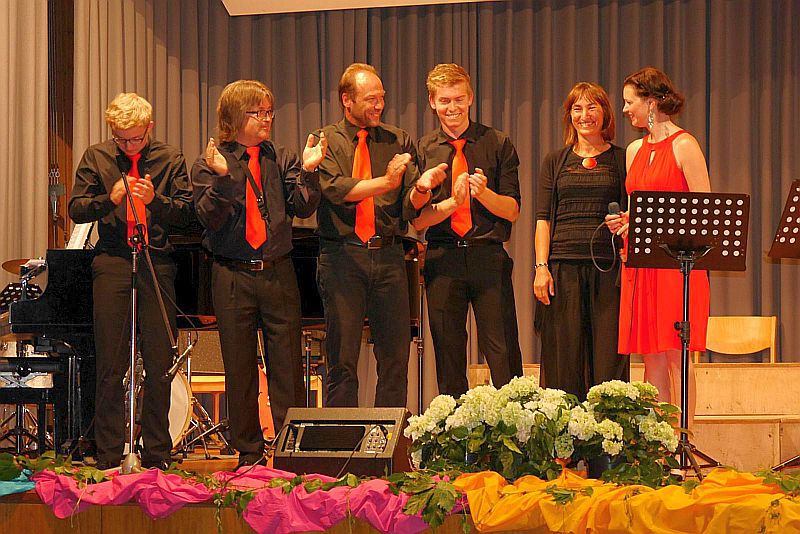 Ergänzt wurde der Abend durch die großartige Gesangseinlage von Steffi Glunk und durch die Unterstützung der Band von Johannes Romer. Bereits zum wiederholten Mal konnte mit der aus Klavier, Saxophon, Bass, Gitarrre und Schlagzeug bestehenden Musikgruppe eine optimale Begleitung zu einzelnen Chorstücken gewonnen werden.
