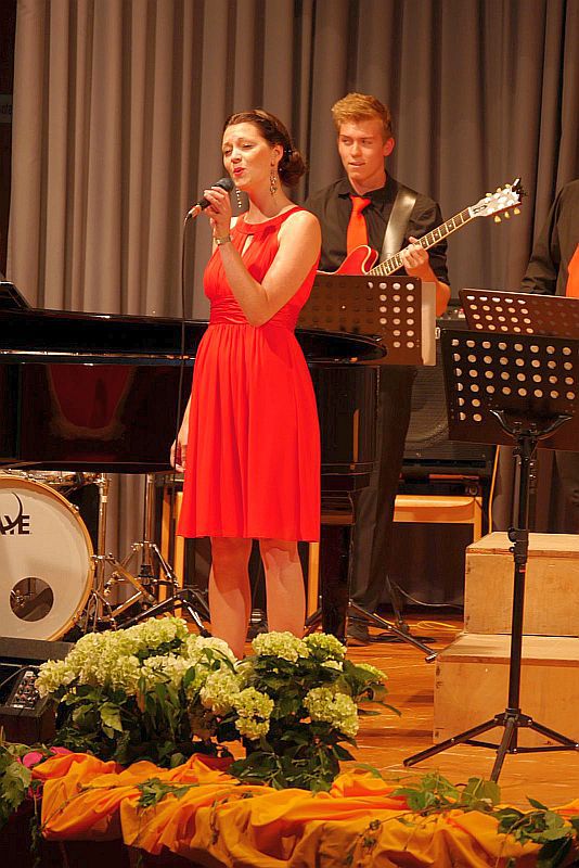 Nach der Pause begeisterte Steffi Glunk, die gemeinsam mit der Band von Johannes Romer wundervolle Klassiker des Jazz präsentierte, sich zum Mond fliegen ließ, einer Welle und Miss Jones begegnete bis sie das Girl aus Ipanema vermisste.