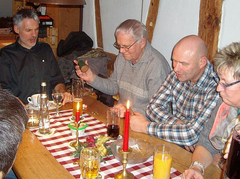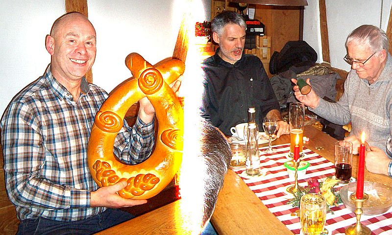 An mehreren Tischen wurde eifrig um Wurst, Käse, Überraschungspäckle, Süßigkeiten und Neujahrskränzen gewürfelt. Abschließend wurde der größte Kranz, gespendet vom Frohsinn, unter allen Dagewesenen ausgewürfelt. Friedrich Pfaff hatte Würfelglück und wurde der neue Paschkönig.