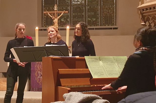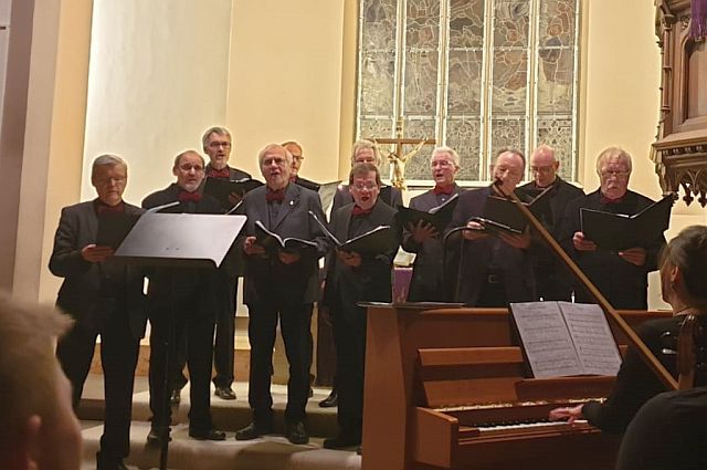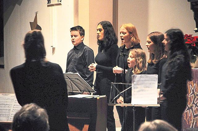 Nach den Variationen über Tochter Zion mit Peter Hastedt an der Orgel eröffnete der Gemischte Chor mit der „stillsten Zeit“ von Lorenz Maierhofer das Programm. Es folgte ein Höhepunkt des Abends mit dem Ave Maria, zu dem die Schülerin Salome Huschenbeth ein glasklares Solo von der Kanzel singen durfte. Da schwebte der deutliche Kontrast zu den dunklen Stimmen des Männerchors zu „Vor langer Zeit in Bethlehem“ und dem russischen „Jubilate“ im Kirchenschiff.